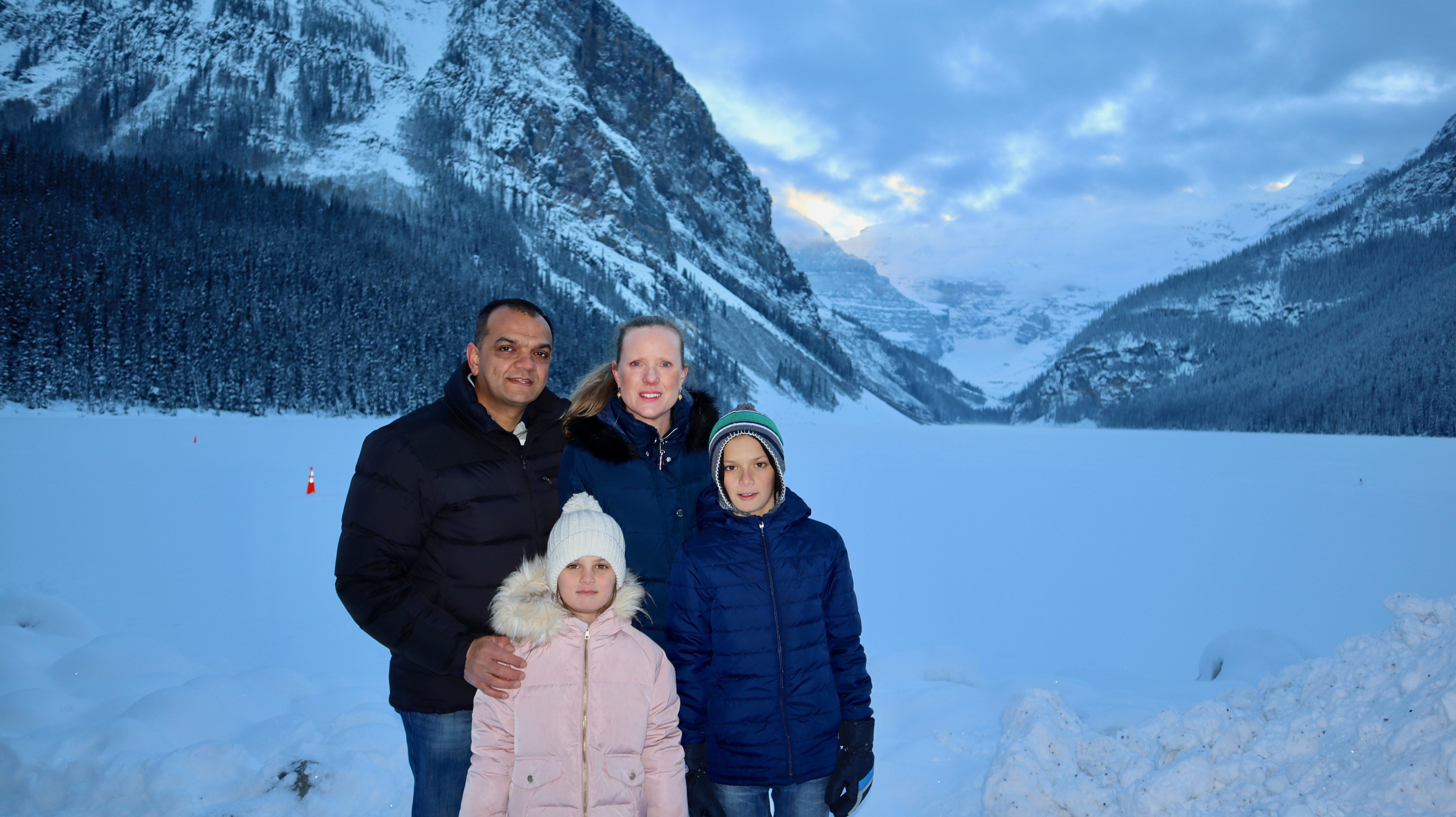 Widely considered the Banff National Park’s top attraction, Lake Louise is transformed in winter into a snowy wonderland. It was an amazing experience for us to walk on frozen Lake Louise. It was like time has gone to stand still and when we removed the top layer of ice could clearly see down the lakebed as if everything inside was preserved in a time capsule. Our kids were fascinated and were very careful walking on frozen Lake Louise as if they will fall through. I have tap ice in front of them to assure them that it is safe to walk on frozen Lake Louise.
